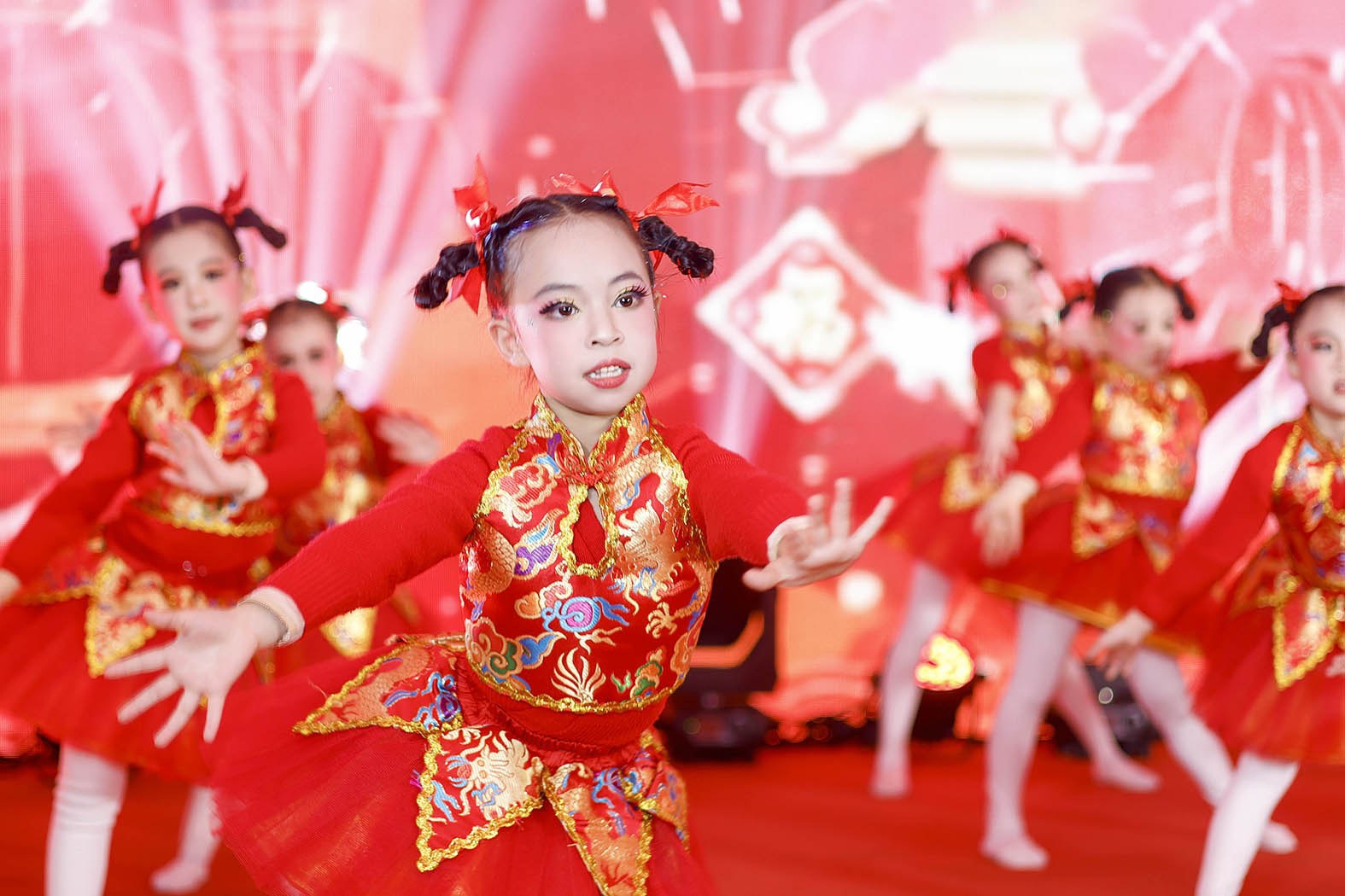 2月7日,在东港街道塘头村文化礼堂,小朋友正在演出