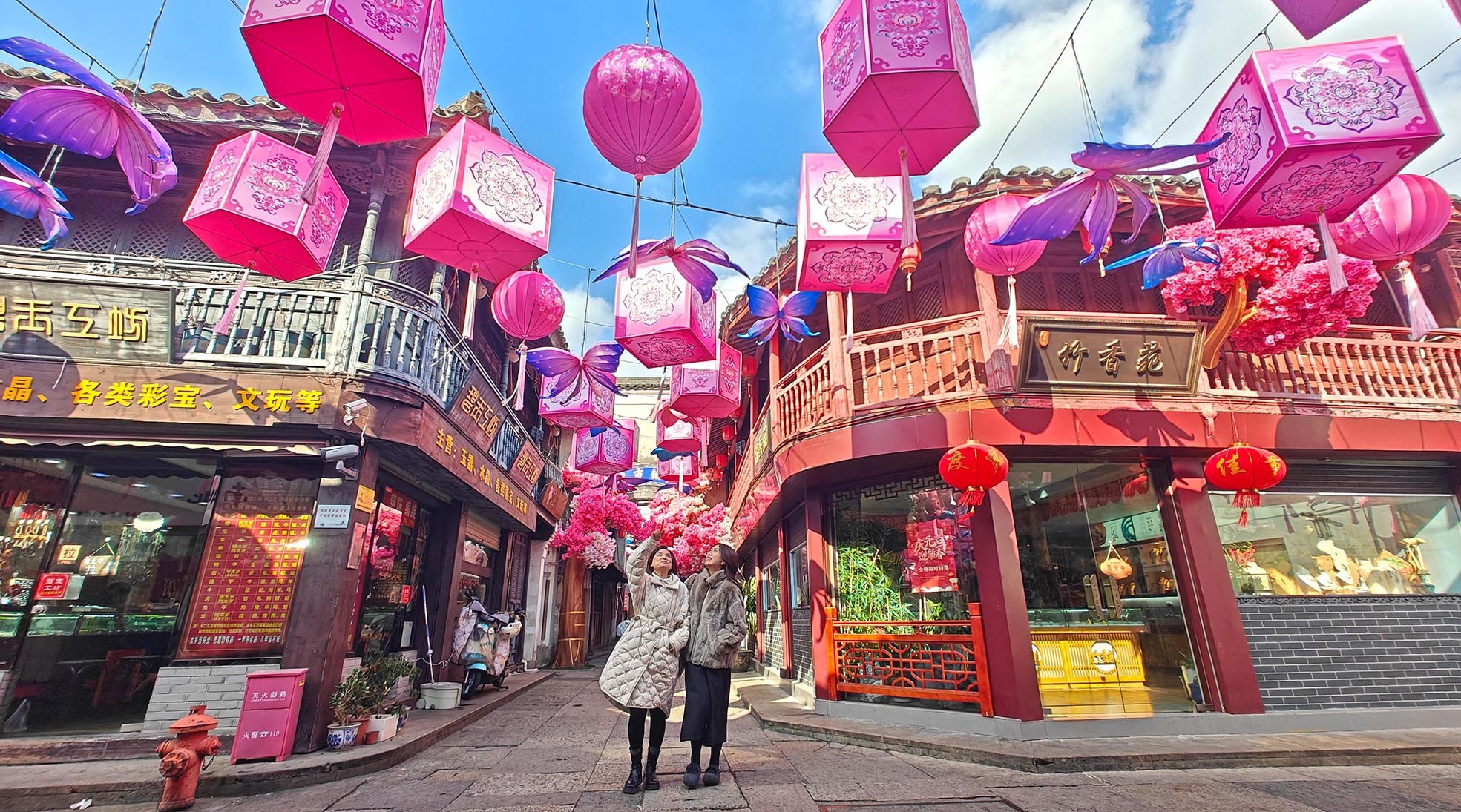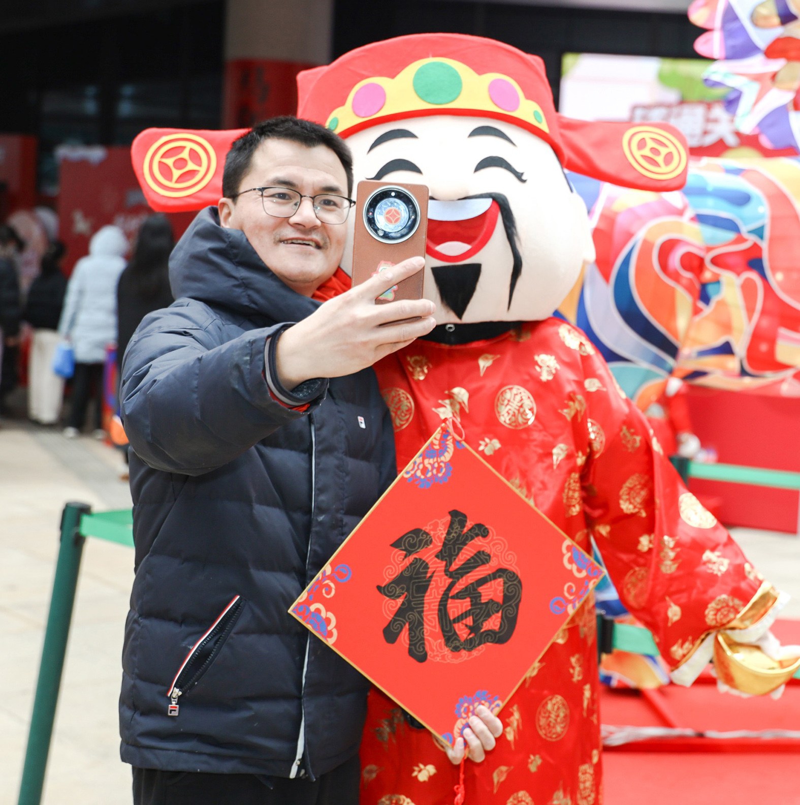 2026年“阿拉过节嘞”春节传统文化活动现场,一位市民自拍留影