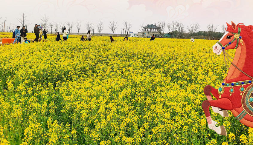 近日,岱山东海郊野公园,朵朵油菜花盛开形成大片花海,吸引人们前来拍照打卡,提前感受春天的气息。
