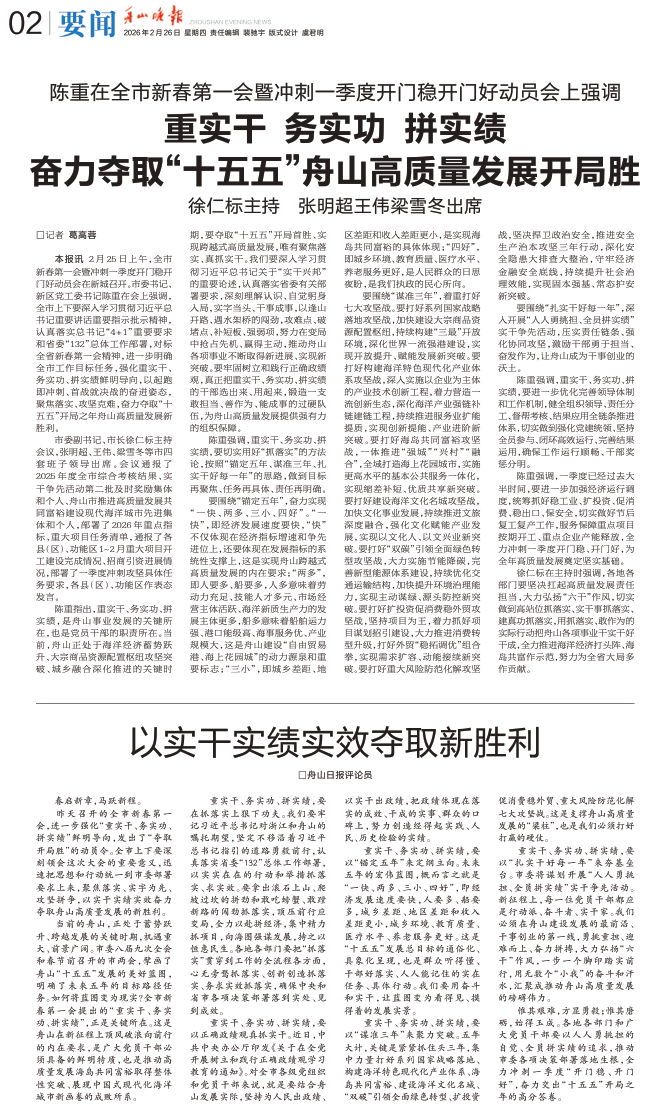重实干 务实功 拼实绩 奋力夺取“十五五”舟山高质量发展开局胜