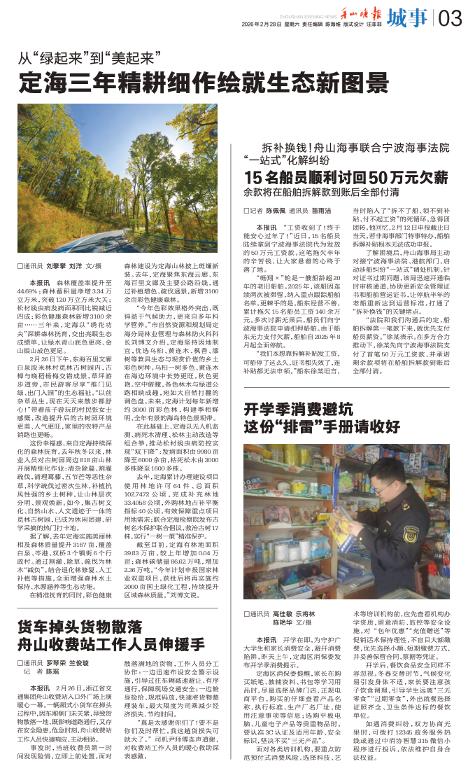 定海三年精耕细作绘就生态新图景