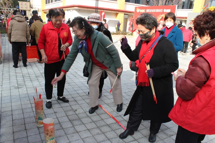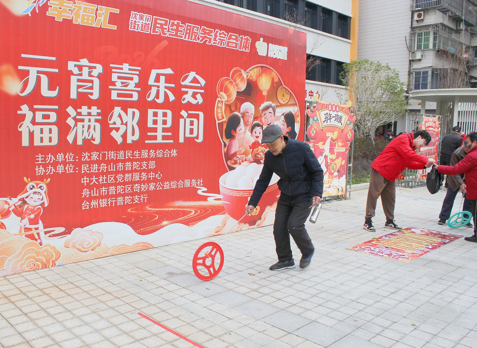 昨天上午9点,幸福汇·沈家门街道民生服务综合体小广场人头攒动。活动现场划分出“惠民服务”与“趣味游园”两大区域。免费理发、磨刀、义诊等便民服务前排起长队,猜灯谜、夹“汤圆”、投壶等趣味游园区更是欢声笑语不断。居民们手持打卡集章,兴高采烈地兑换汤圆和节日礼品,邻里情谊在互动中升温。
