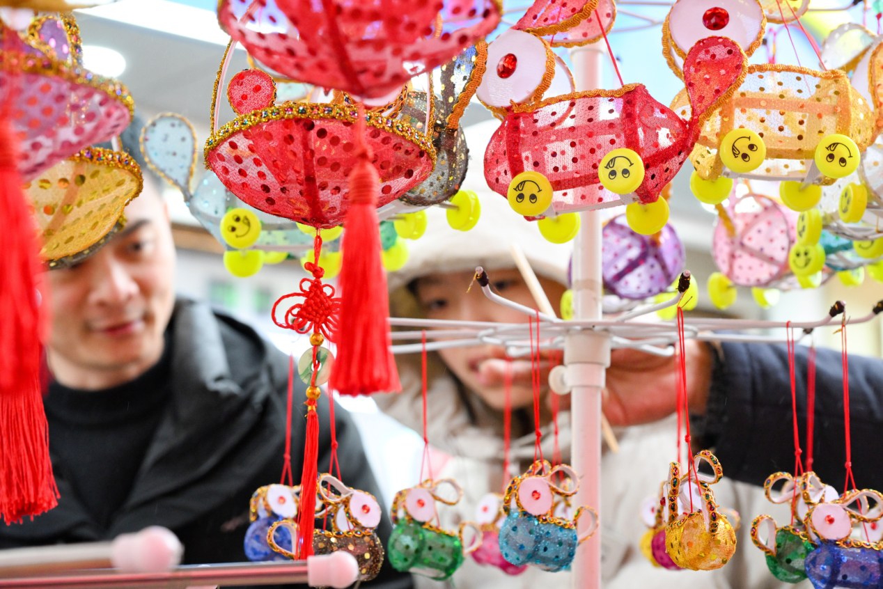 3月2日,游客在南京市夫子庙花灯市场挑选花灯。
