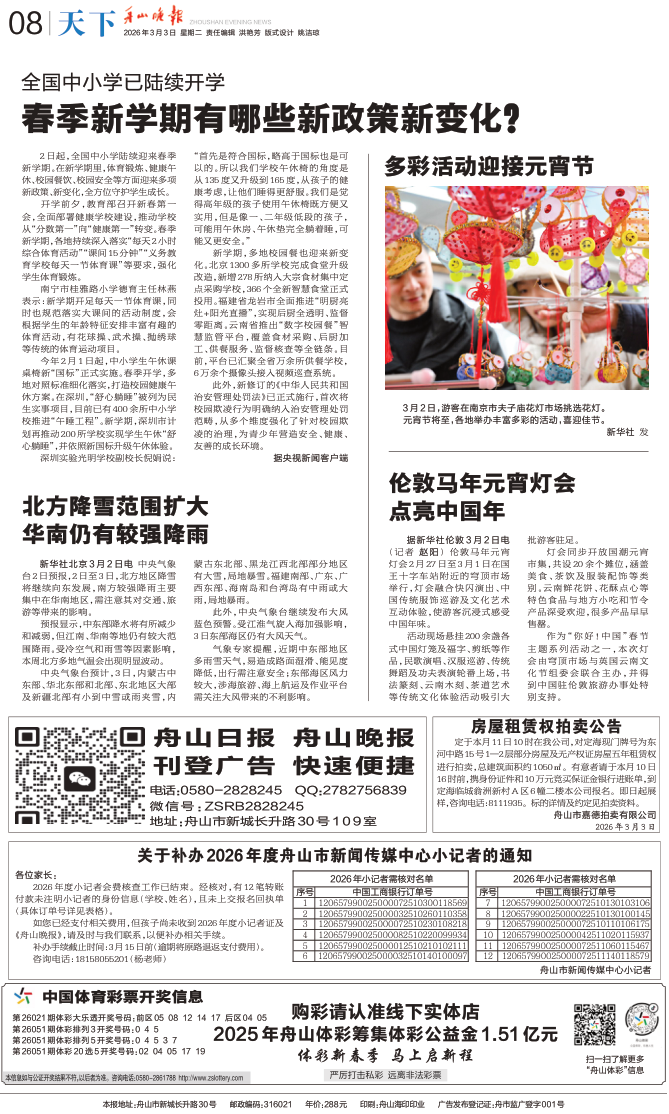 关于补办2026年度舟山市新闻传媒中心小记者的通知