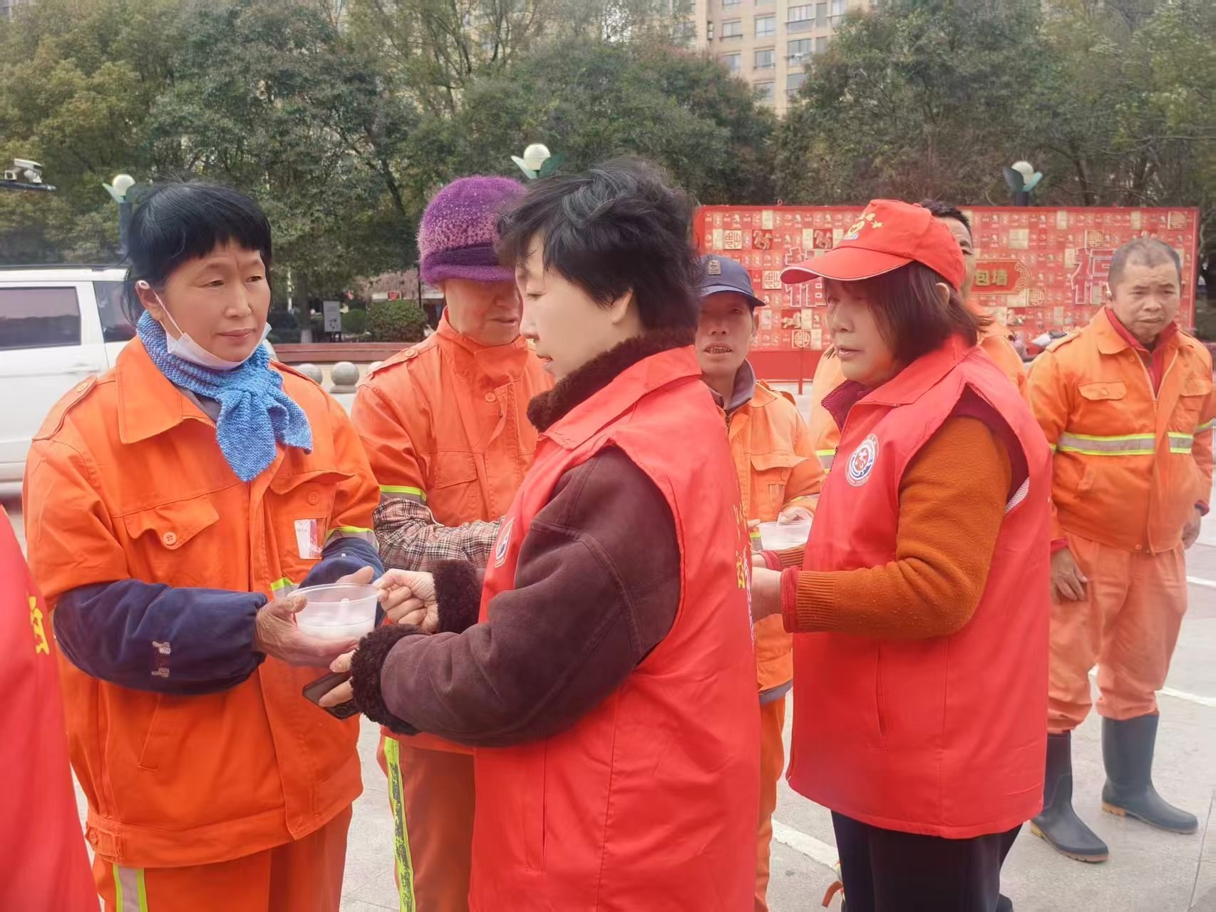 3月3日,岱山“东海渔嫂”将热腾腾的汤圆送到快递员、外卖小哥、环卫工人等一线工作者手中