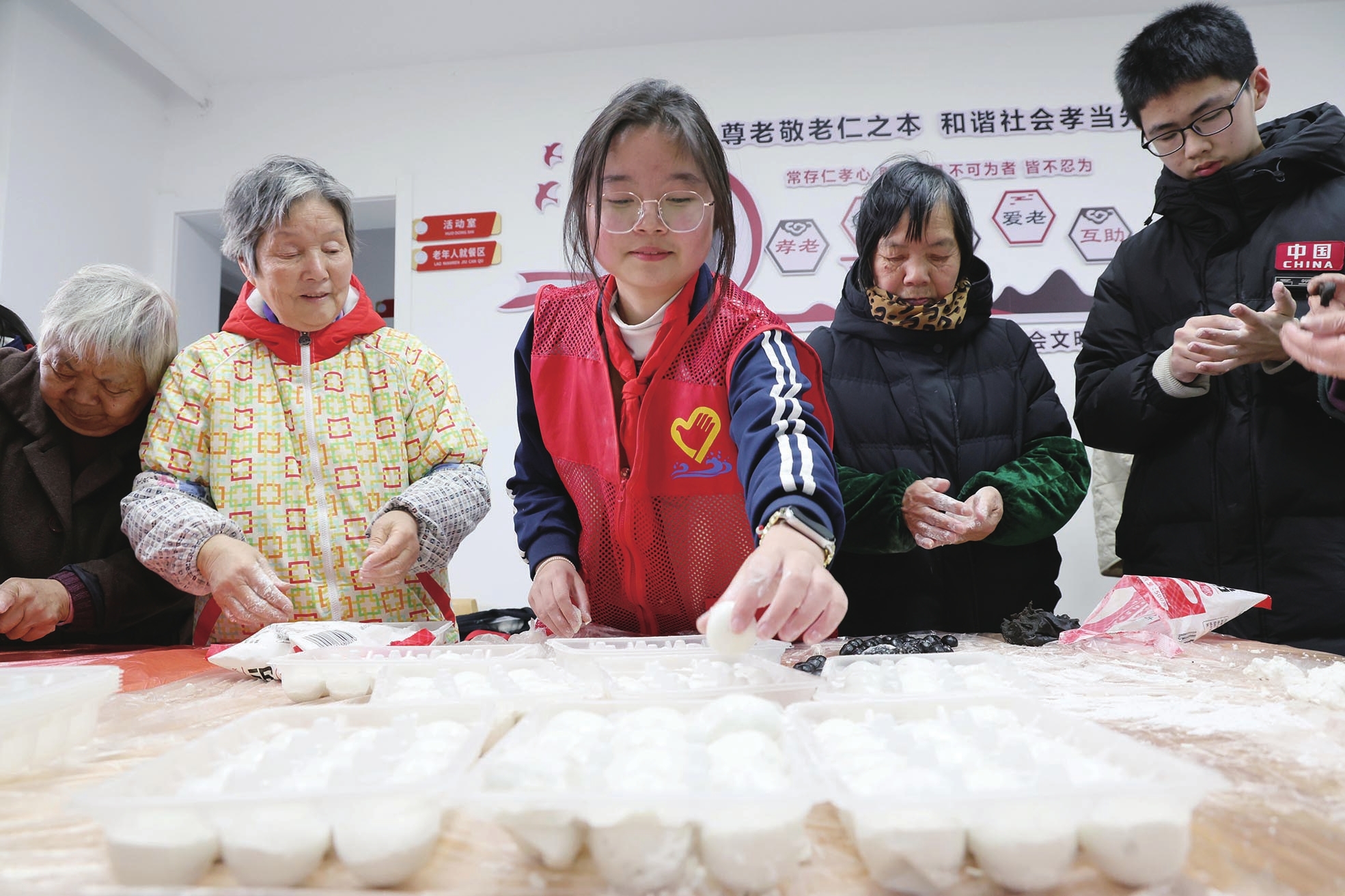 3月2日,定海区开源社区开源新村,志愿者和居民们一起包汤圆,喜迎元宵佳节