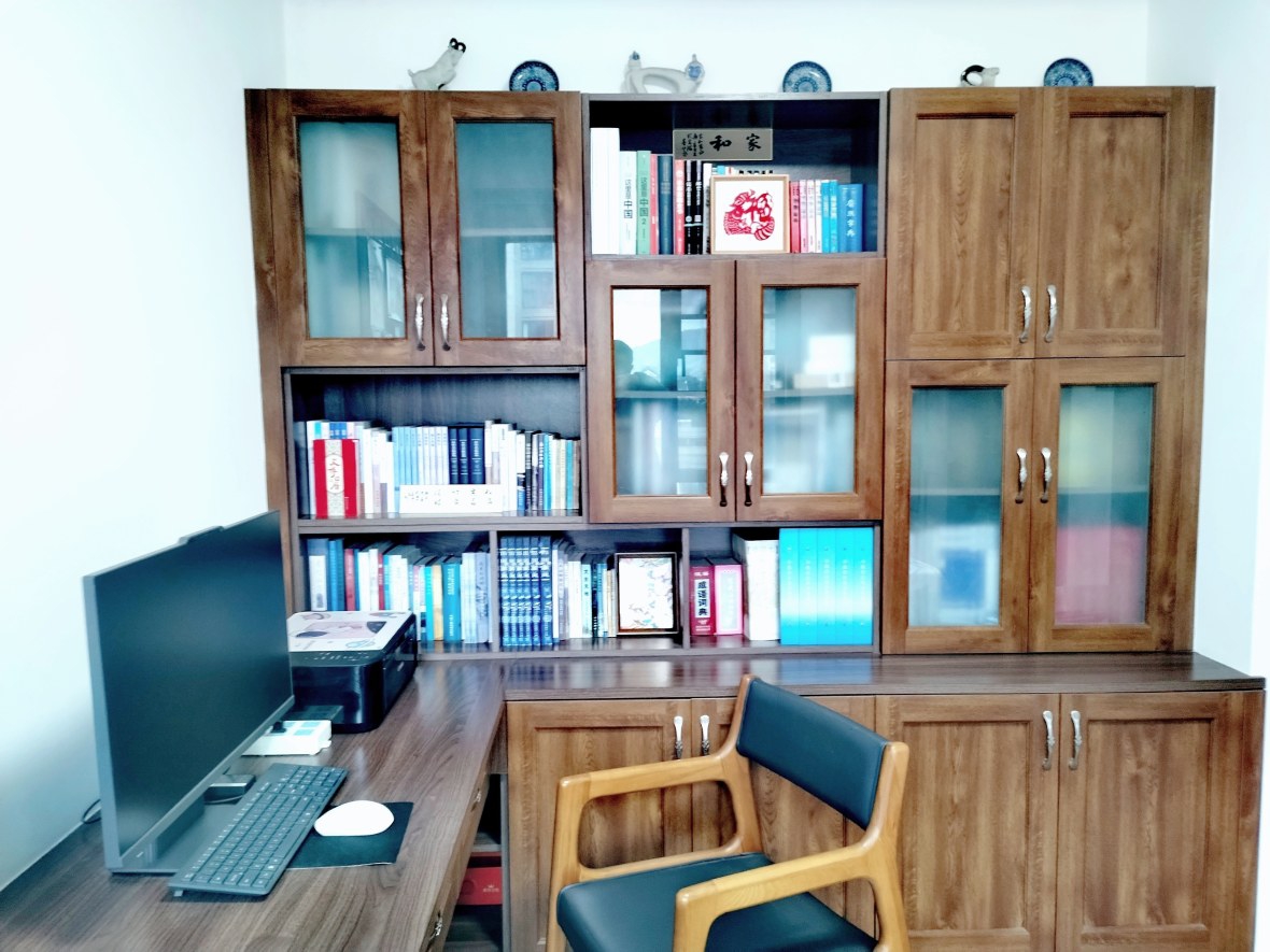 我家现在的新居,格局有些独特,拥有两个书房:一个书房,是给老伴挥毫抚琴;另一个书房,是我的精神栖息地。两个书房的设计风格和布局有所区别,老伴的书房除了书柜,有一张超大的写字台,铺上毛毡,摆放着笔墨纸砚,还有挂书画的专用墙面,配备琴桌等。而我喜爱阅读写作、旅行摄影,书房设计有藏书柜、电脑桌、照片墙、床榻,配有电脑、打印机、切纸机、塑封机、碎纸机等,房间不大,应有尽有。