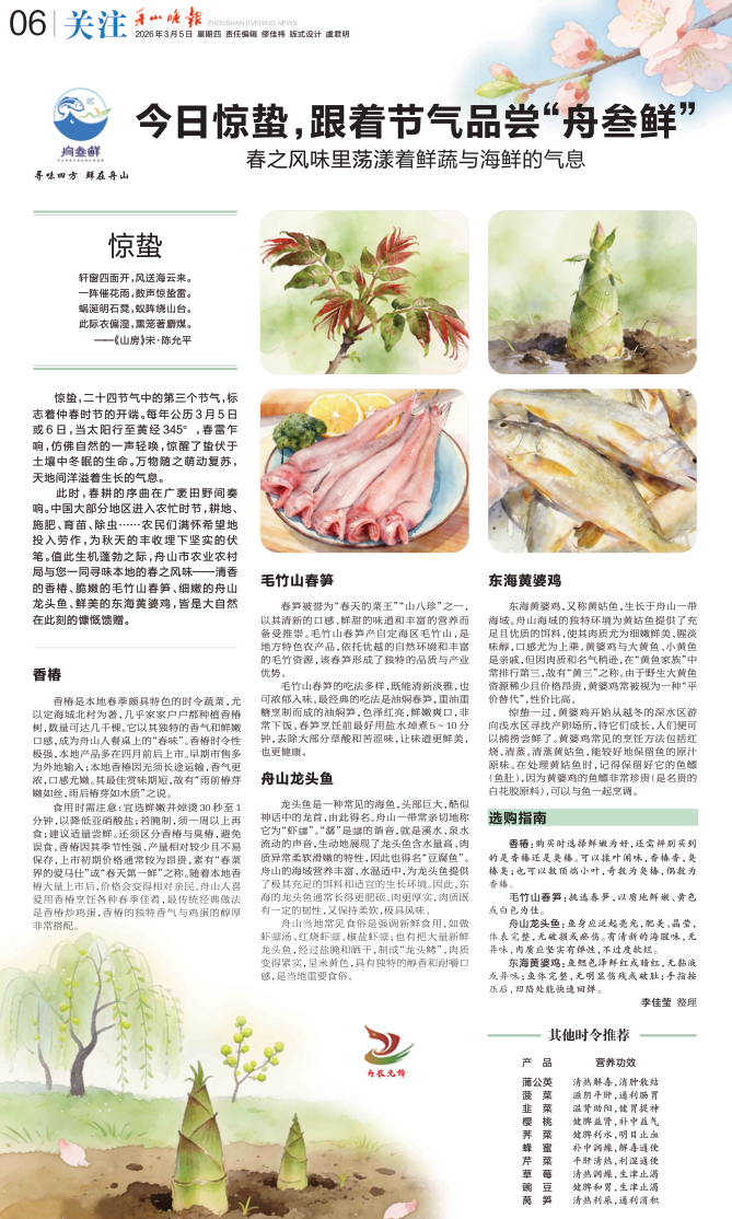 今日惊蛰,跟着节气品尝“舟叁鲜”