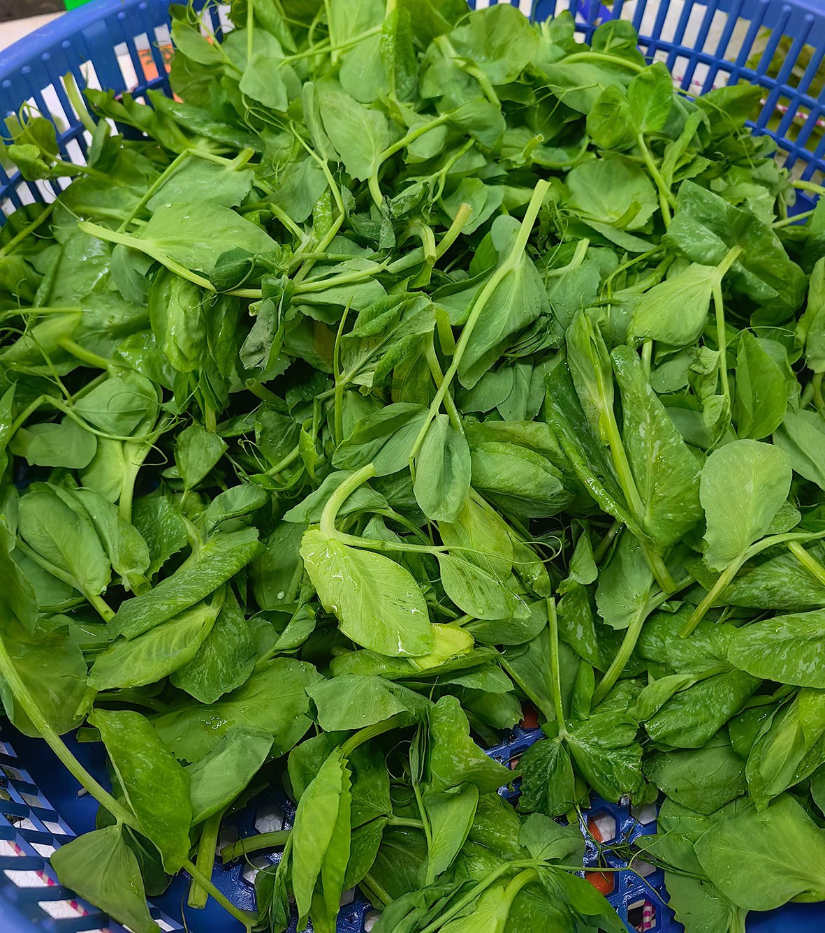 在新城老碶菜场,蔬菜摊位上的春菜品种更加丰富。李阿姨的摊位上摆放着新鲜的蚕豆荚。“现在卖的主要春菜是蚕豆、荠菜,今天摊位没有荠菜,偶尔有货,都是自己去割来的。”李阿姨说,她家的荠菜每公斤24元,颇受老顾客欢迎。眼下荠菜有些都开花了,离落季不远了,想吃要抓紧。”