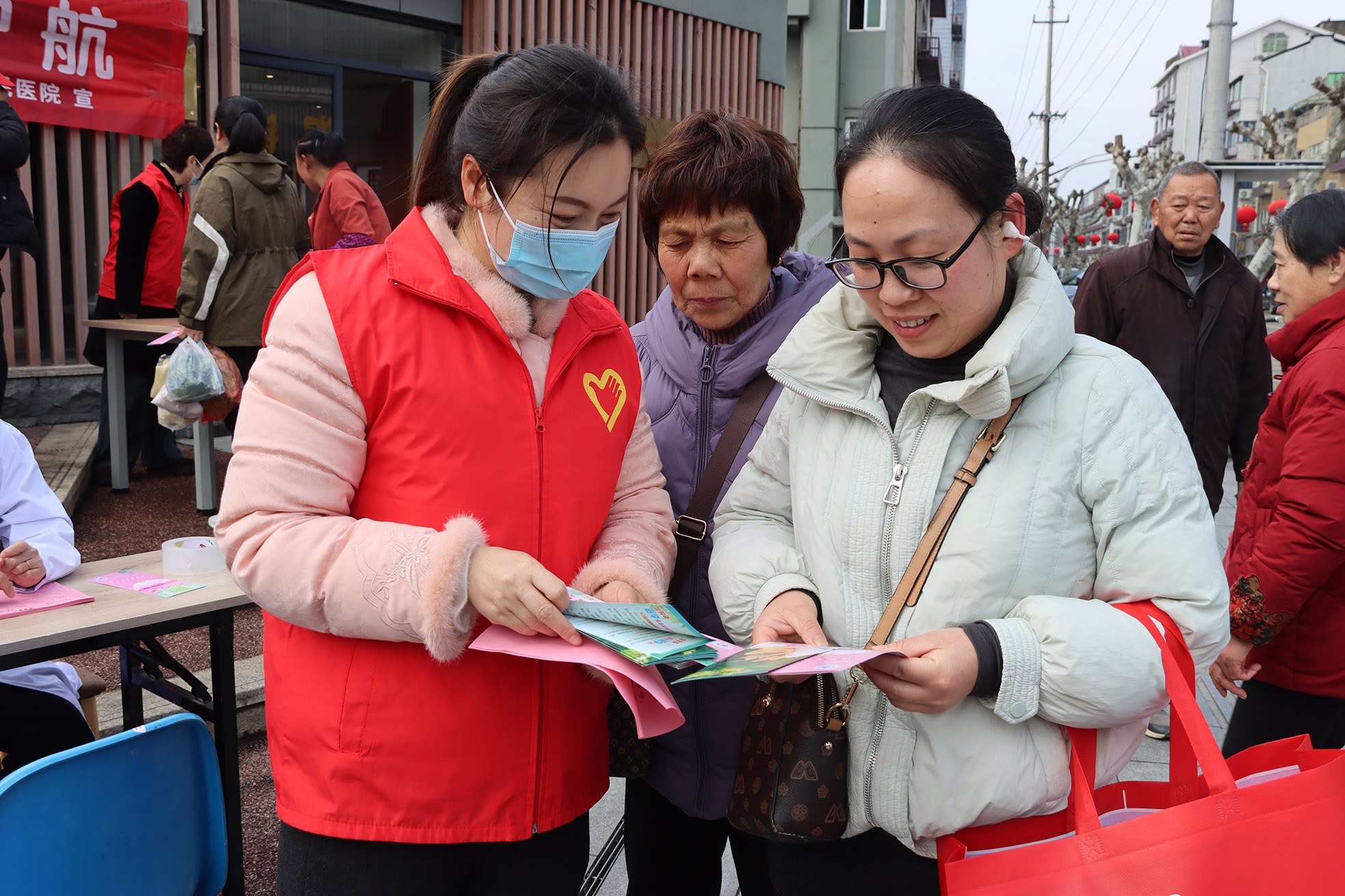 昨天,普陀区第二人民医院组织部分女医生、女护士走上街头开展“守护初孕 为爱护航”宣教活动。医务人员向初孕者及其母亲、婆婆讲解优生优育政策,并分发优生优育政策等宣传小册子。