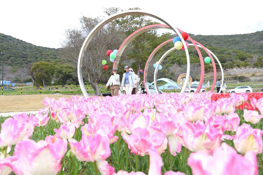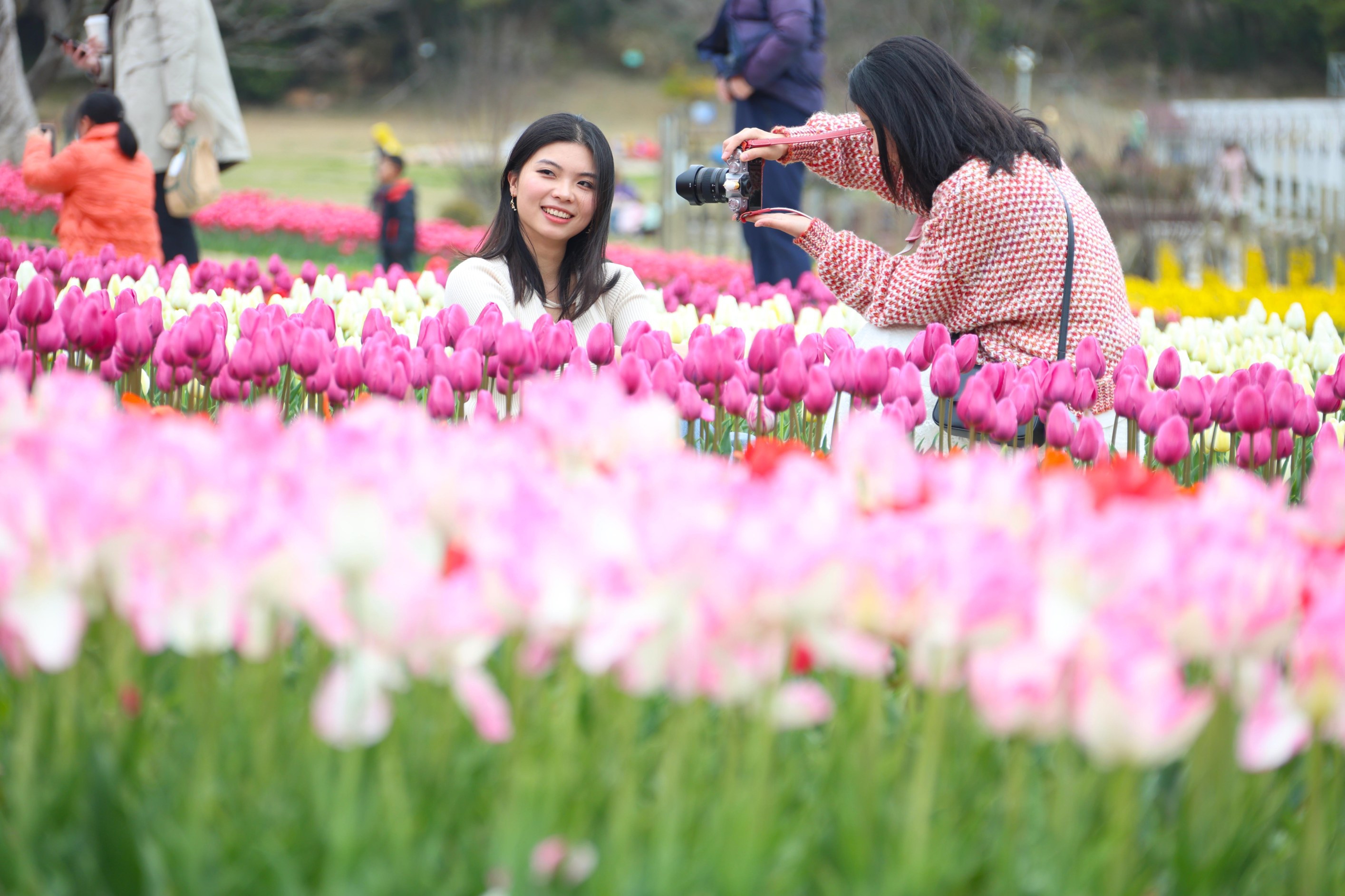 又到了踏青赏花的季节。3月9日,朱家尖大青山景区四季花海内的一整片郁金香迎着春风竞相绽放,美不胜收,吸引众多游客前来欣赏、留影。据悉,这片郁金香花海面积达1500平方米,涵盖林肯、粉鹦鹉、肉色长安等八个品种,种植郁金香5.5万株。
