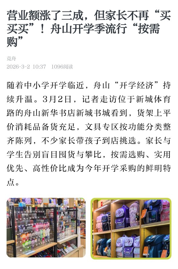 令人欣慰的是,在面对“开学换新”热潮时,我市的不少家长和孩子保持了理性。他们只买对的不买贵的,追求“既好又省”的消费理念,把实用性、安全性作为购物选择的基本原则。按需选购、实用优先、高性价比的“经济开学”成为今年开学采购的鲜明特点。