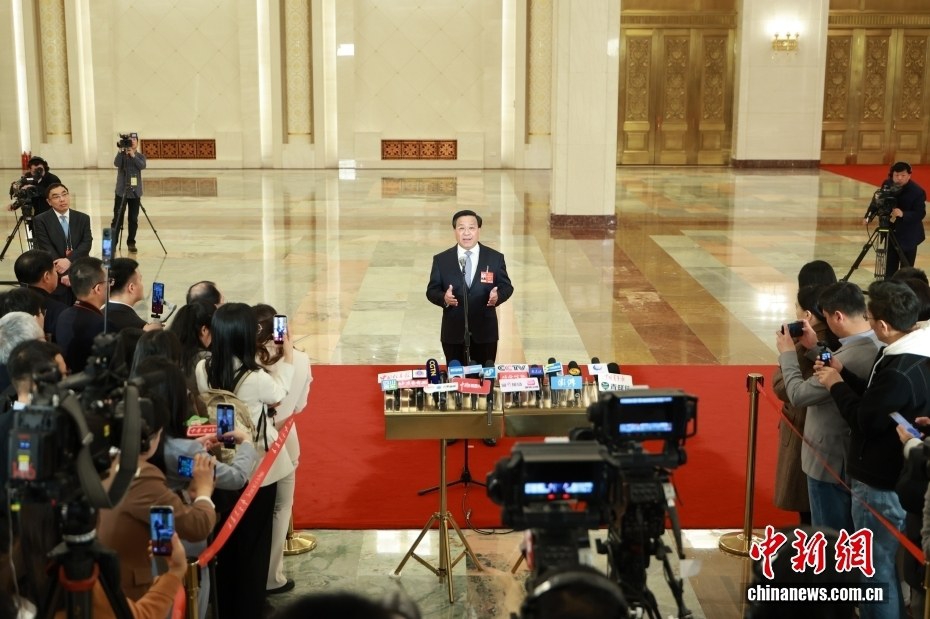3月9日,十四届全国人大四次会议第二场“部长通道”集中采访活动在北京人民大会堂举行。图为中国农业农村部部长韩俊接受媒体采访。 中新社记者 蒋启明 摄