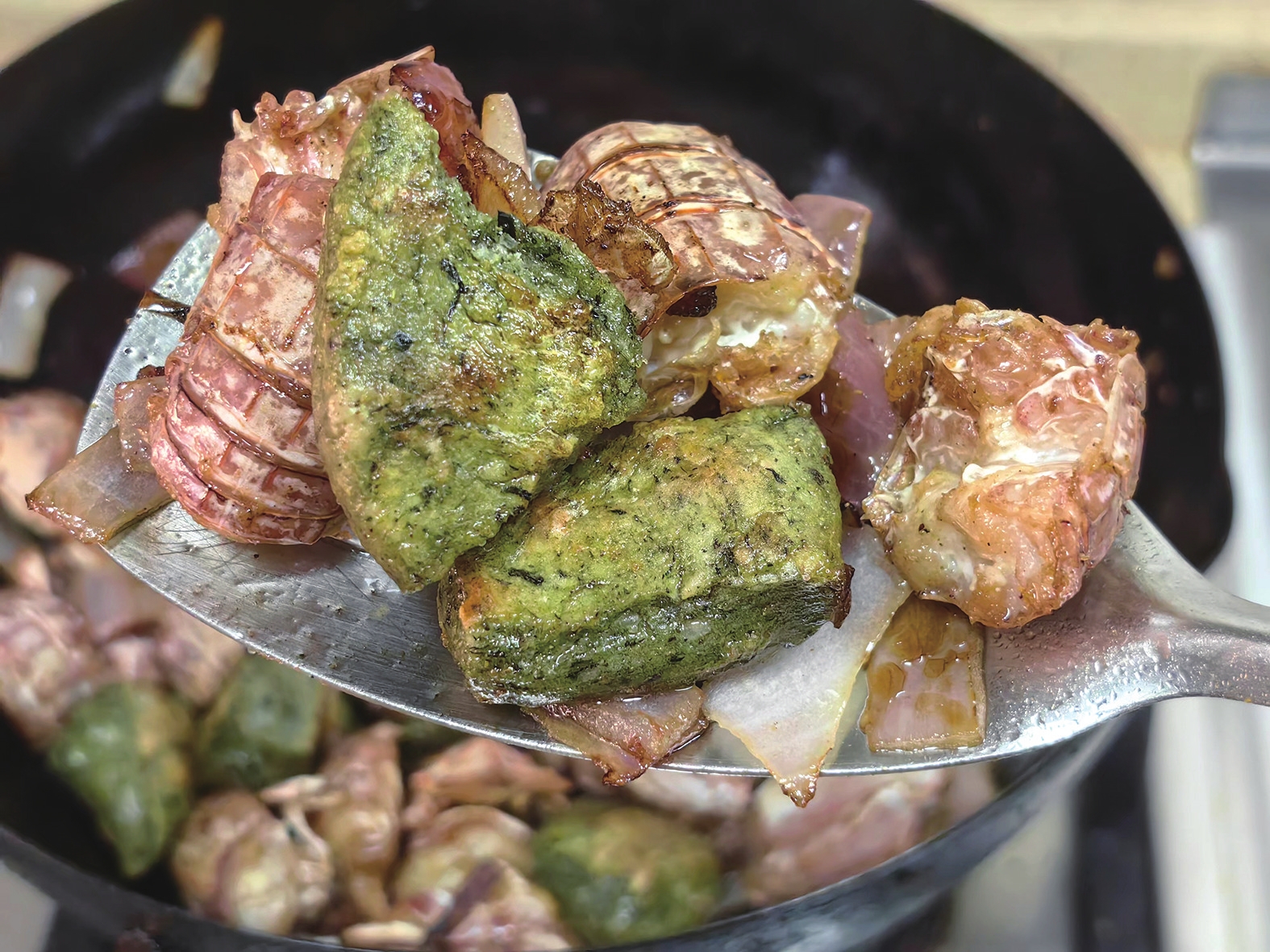 跨界碰撞 青饼解锁“新潮吃法”传统的青饼,也在与其他食材的碰撞中,迸发出意想不到的新滋味。一道“皮皮虾炒青饼”的创意菜,近期在美食圈走红。分享者吴舟燕是一位在北仑生活的舟山人,她将春日肥美的皮皮虾与家乡的青饼结合,用椒盐翻炒。“海鲜的鲜,艾草的香,糯米的软糯,加上椒盐的咸香,一口下去就是大海和家乡的味道。”这道菜,成了思念故乡的独特寄托。