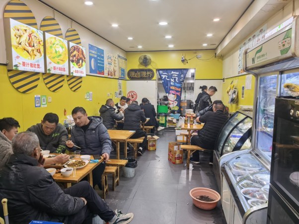 几口面汤下去 身上就热出了汗“姜汁面”是一家深夜食堂,只做晚饭和夜宵。正月初一,沙河路上不少小吃店的老板都闭店过节去了,而曾银丽和张豪夫妻俩依旧下午两三点到店开门备菜。