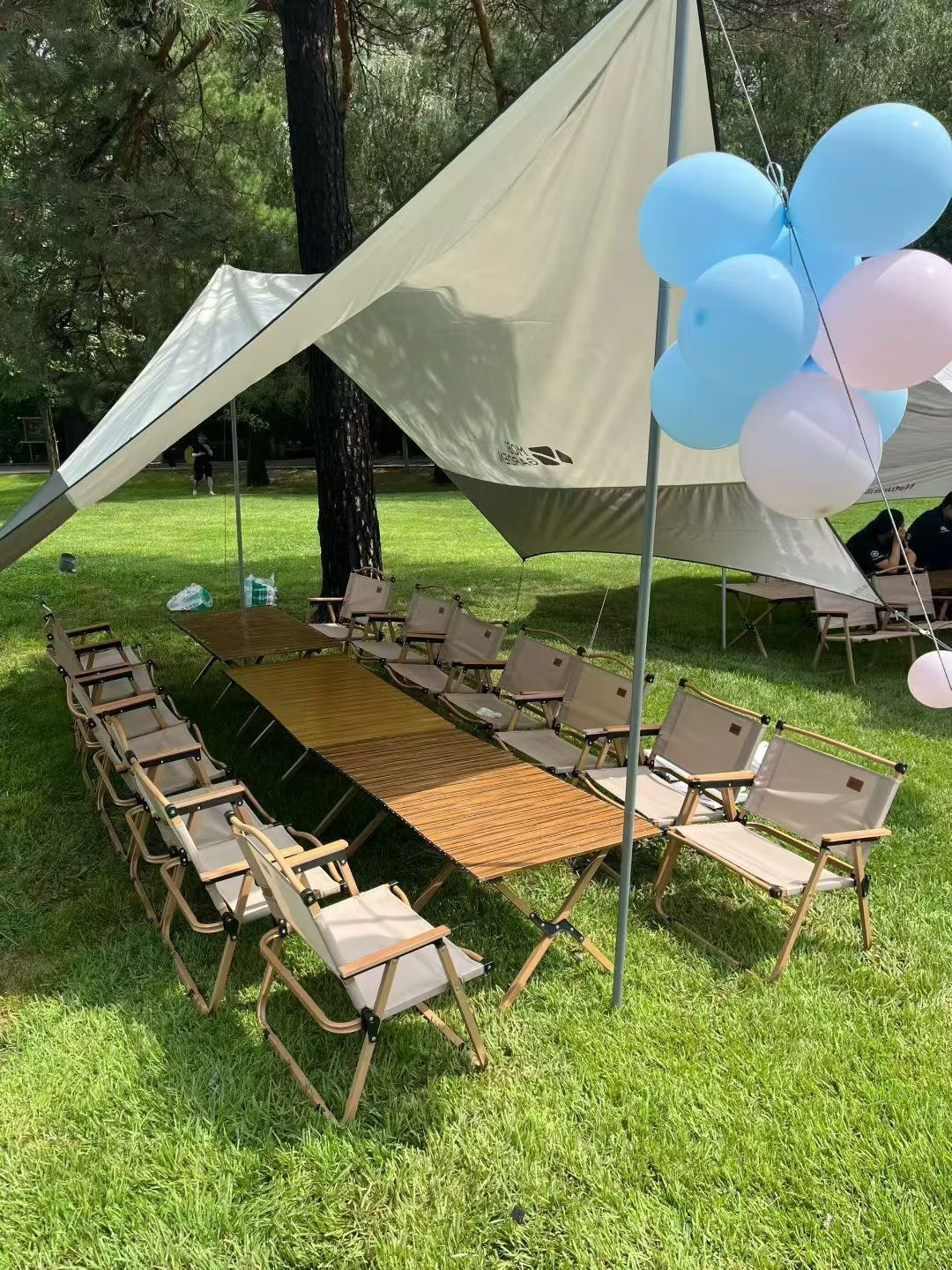 “我现在的主力客群转向了生日派对、公司团建、商圈开业。”他介绍,针对8到10人的聚会场景,租赁的性价比优势凸显出来。一套包含蛋卷桌、10把椅子和一顶天幕的装备,租赁仅需200元,人均仅20元。“人多的露营聚会,家里很难凑齐这么多桌椅,买的话又用不了几次,租就成了最好的选择。”目前,他的仓库里仅露营椅就储备了100把,专门应对这种团体大单。