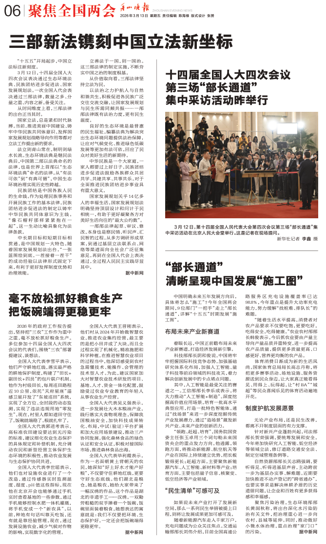十四届全国人大四次会议第三场“部长通道”集中采访活动昨举行