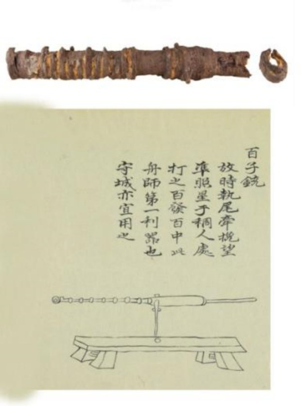 舟山博物馆收藏的铁铳。《兵录》中何汝宾介绍了一种名为“百子铳”的轻型铁铳,从大小形制上看和这门铁铳最为接近。 资料照片