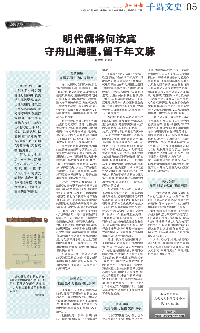明代儒将何汝宾守舟山海疆,留千年文脉