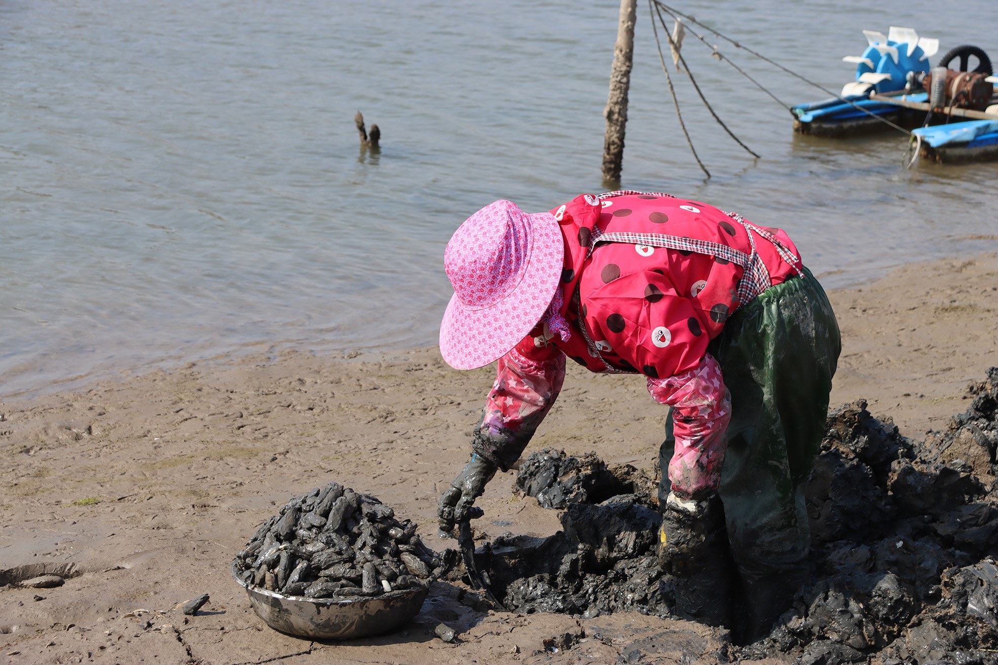 六横围塘混养蛏子起捕