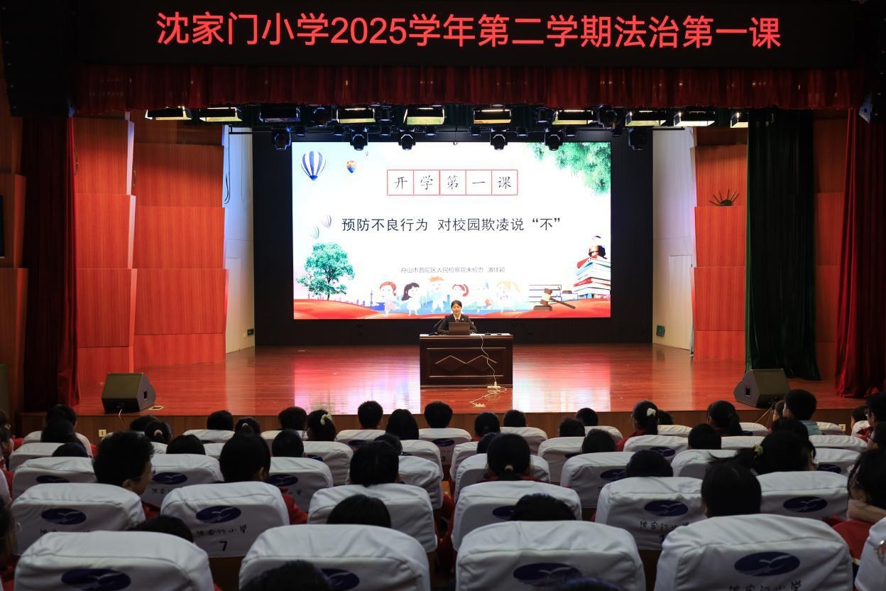 本报讯 近日,普陀区人民检察院未检办工作人员潘佳颖走进沈家门小学,以“预防不良行为,对校园欺凌说‘不’”为主题,为学生们送上新学期法治第一课。
